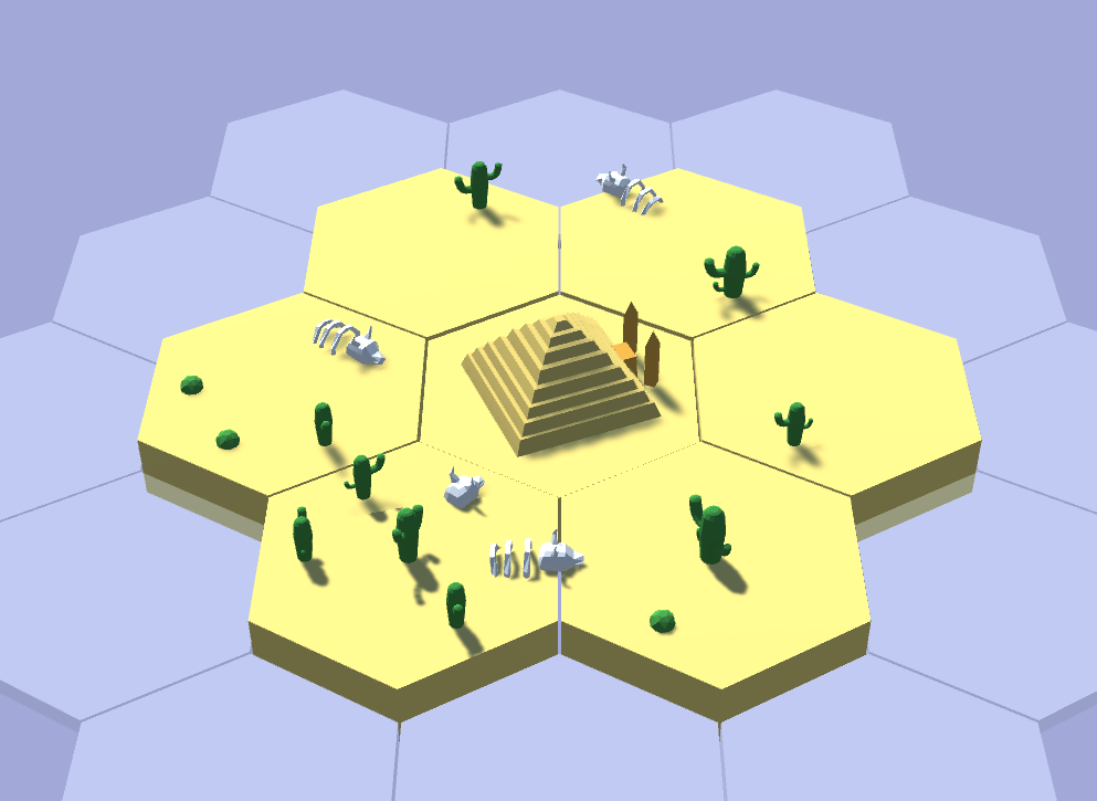Every biome spawn a tile with a set of 0-7 props, one per edge and one on the center of the tile. But some biomes had a special big prop, taking the whole tile to itself. We wanted to add a collection feature by finding these props, and managing to encircle them entirely of tile of their biome. Unfortunately the deadline hit before it could see the day.